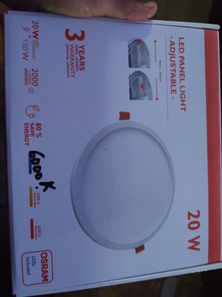 Panel LED de 20W con tecnología SMD2835 y 20000 lúmenes. Ofrece un ahorro energético del 80% y cuenta con 3 años de garantía. - Temperatura de color: 6000K (Blanco Frío). - Ajustable en tamaño de 50mm a 205mm. - Incluye LEDs OSRAM. *5 PANELES LED ,LOS 5 POR 15€,,,POR SEPARADO 4€ UNIDAD