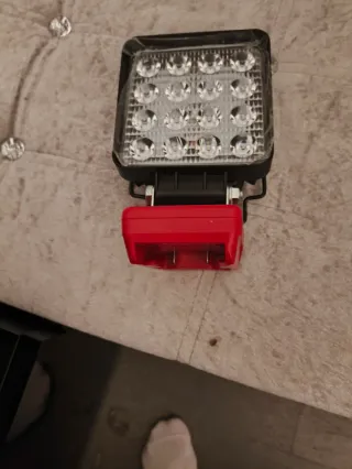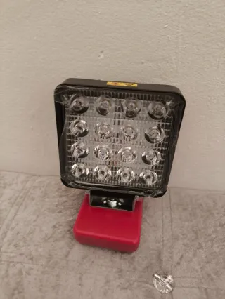 Foco de luz LED cuadrado con base roja. - Panel de 16 LEDs. - Base de color rojo.