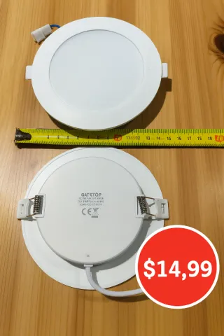 Panel LED redondo de 12W, ideal para iluminar cualquier espacio. uno nuevo y uno de segunda mano Luz blanca fria - Potencia: 12W - Temperatura de color: 4000K-4500K - Voltaje de entrada: AC85-265V - Voltaje de salida: DC24-44V 280mA