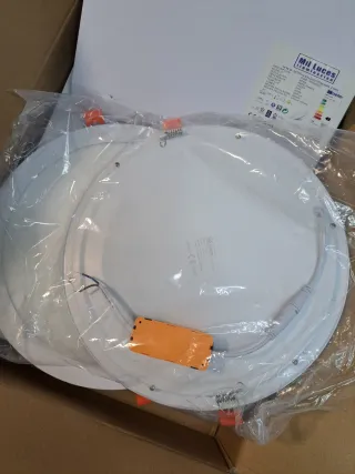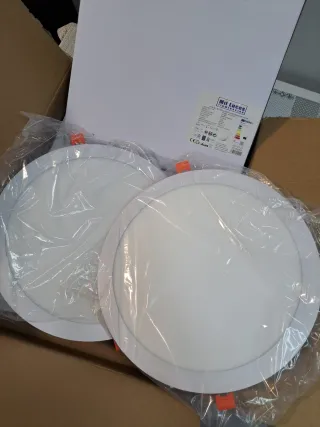 Pack de 2 downlights LED de 30W cada uno luz blanca neutra, con un diámetro de corte de 205 mm. Son de empotrar en techo. Están sin estrenar en su caja.