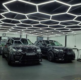 Juego de paneles LED para iluminación de techos. Ideales para espacios como Gimnasios o Barberías, Garaje, Supermercado, Oficina, Sala de Expocisiones etc... - Aportando una luz moderna y clara. - Diseño rectangular con iluminación integrada. - Acabado en color blanco. - 4,65 metros largo x 2,32 ancho. - 400W.
