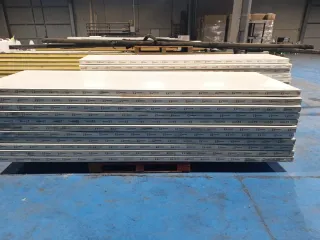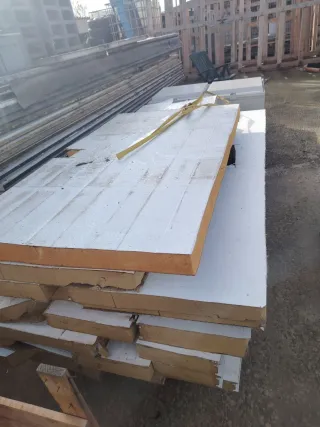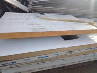 Se venden restos de paneles sándwich, ideales para proyectos de construcción o aislamiento. - Paneles con acabado blanco. - Núcleo aislante. - Marca: HUURRE QuadCore. Todo el palet 80eur