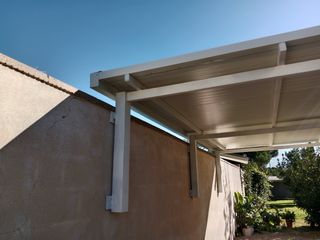 Estructura de madera con cubierta de panel sándwich, ideal para terrazas y porches. - Vigas de madera tratada. - Panel sándwich para cubierta. Servicio de calidad Profesional cualificado y puntual.