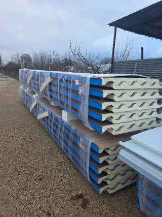 Se venden paneles Sandwich nuevos. Para aislamiento térmico y acústico. Núcleo aislante de alta densidad. Ideales para cubiertas y fachadas. De largo hay de 4 y de 6 metros. Y de ancho es de 1 metro De largo de 4 metros x 3 de ancho: 66 euros panel De largo de 4 metros x6 ancho 75 euros. De largo de 4 metros x8 ancho 85 euros. Panel De largo 6 metros x 3 cm de ancho 95 euros. Panel De largo 6 metros x 6 de ancho 105. Euros.El panel De largo 6 metros x8 de ancho 120euros el panel Para más información pregunta Por Rocío 652126286