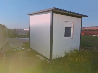 Módulo prefabricado de 3x3 metros, ideal para diversas aplicaciones. - Construcción con paneles sándwich. - Estructura robusta y duradera. -A falta de terminar angulos remates de ventana y poner puerta mas grande o tapar huecos de puerta -tambien aceptaria cambio por enduro o carabana