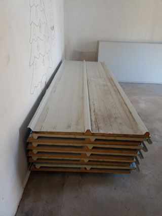 Busco nuevo hogar para este panel sándwich. Ideal para fachadas y cubiertas. Cubierta; 2,20,2,50 y 5 metros de 30 mm Fachada; 2.50 metros de 30 mm - Perfecto para proyectos de construcción o reformas.