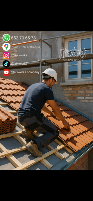 Profesional en montaje y reparación de tejados. Trabajo seguro, limpio y con materiales de calidad. ✔ Instalación de teja nueva ✔ Sustitución de tejas rotas ✔ Reparación de goteras y filtraciones ✔ Cubiertas de teja y panel sándwich ✔ Revisiones completas del tejado ✔ Aislamiento e impermeabilización ✔ Reparaciones de aleros y remates ✔ Tejados de obra nueva y reformas Puedo darte presupuesto por fotos o pasar a revisar el tejado si lo prefieres. Trabajo en Sabadell y alrededores. Respondo rápido por Wallapop.