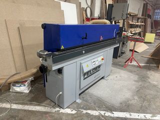 Se vende canteadora FELDER G-360 en buen estado. Incluye un juego de fresas de diamante. Grupo de encolado y presión: calderín de cola termofusible + rodillos neumáticos • Grupo de tupí: 2 motores con fresas de diamante para achaflanar y perfilar • Retestador: corte al ras • Grupos opcionales: rascador de cola / rascador de radio y pulidores • Panel de control sencillo Datos técnicos: • Año: 2016 • Tensión: 3 × 400 V • Dimensiones (L × A × H): 2350 × 780 × 1550 mm • Peso: 450 kg