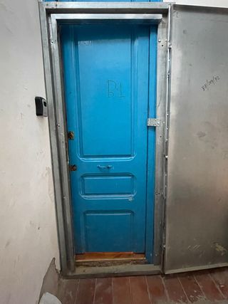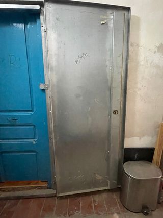 Puerta de seguridad metálica, ideal para disuadir ocupaciones. - Marco metálico resistente. - Cerradura de seguridad. - Diseño de panel. - Nuevo cuesta más de 500€.
