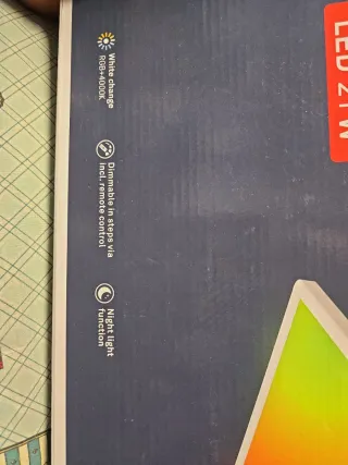 Panel de luz LED Epicflare de 21W con cambio de color RGB y luz blanca de 4000K. Es regulable en intensidad. - Cambio de color RGB + 4000K. - Regulable en pasos. - Incluye control remoto. - Función de luz nocturna.