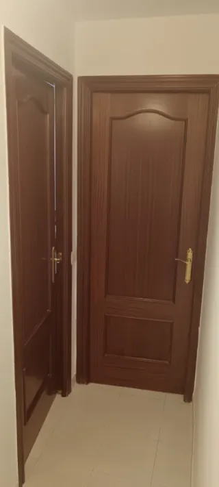 Se venden puertas de madera para interior. - Color marrón oscuro. - Diseño clásico con paneles. - Tiradores dorados. - Se abren a izquierdas, 72x2,02