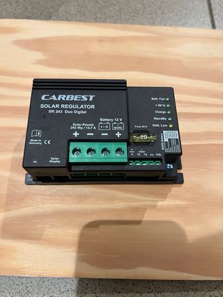 Placa solar monocristalina E-ssential de 130W. - Modelo: E-SSENTIAL 130 SOLAR PANEL - Código de artículo Narbonne: 418148 - Regulador placa solar Carbest. -Cargador de baterías de agm. (Hay que añadir enchufe para la carga) Preferible entrega en mano. Buen estado.