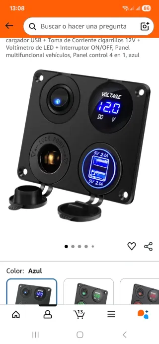 AUTOZOCO Panel de enchufes 4 en 1, Incluye 2x cargador USB + Toma de Corriente cigarrillos 12V + Voltímetro de LED + Interruptor ON/OFF, Panel multifuncional vehículos, Panel control 4 en 1, azul. Dispongo de 2 unidades. Precio para las 2 unidades juntas.