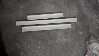 Se venden retazos de perfiles Gola para ampliación de cocina. Material: Aluminio. Color: Gris. Acabado: Mate. Tamaños: Perfil C, altura 73mm: longitudes 60cm y 80cm Perfil L, altura 57mm: longitud 100cm