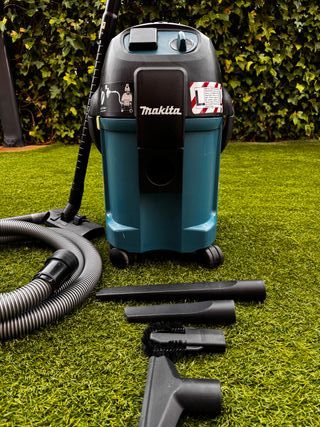 Aspirador industrial Makita modelo 446L con capacidad de 27 litros. Regulable de 1.200 a 1.500 vatios. Uso en taller/obra Incluye manguera, boquillas y accesorios. Ideal para húmedo y seco; potente succión para el taller o la limpieza profunda. - Depósito de 27 litros. - Modelo 446L . - Marca Makita. “No dispone de boya automática de corte por nivel de líquido” “Ideal para taller aspiración de sólidos o líquidos” “Muy buen estado, funcionamiento perfecto” Lo usamos en casa. ¡Uso doméstico, muy poco uso! Como nuevo