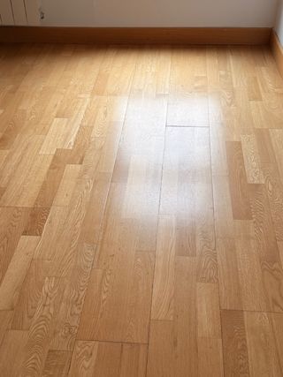 Suelo de madera de roble con tablas enteras. Aproximadamente 40 metros cuadrados disponibles de tablas enteras. A mayores los recortes. - Medidas de las tablas: 220x183 cm.
