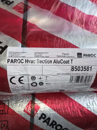 Rollo de aislamiento térmico de lana de roca mineral de la marca PAROC. Ideal para construcción y aislamiento. - Material: Lana de roca mineral. - Marca: PAROC. - Presentación: Rollo. - Empaque: Plástico transparente con distintivo de la marca.