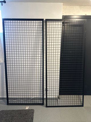 Conjunto de rejas metálicas de color negro. - Estructura de metal resistente. - Diseño de cuadrícula. - Ideal para decoración o exhibición. Hay que venir a recogerlas, disponibles solo el mes de FEBRERO No se aceptan devoluciones