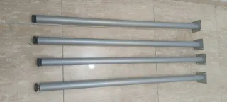 Juego de cuatro patas metálicas regulables para mesas. Son ideales para ajustar la altura y nivelar la mesa. - Material: Metal - Color: Gris - Incluye base cuadrada para fijación