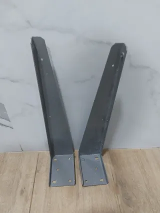 Par de soportes metálicos en forma de L, ideales para estanterías - Color gris. - Fabricados en metal resistente. - Incluyen agujeros para fijación.
