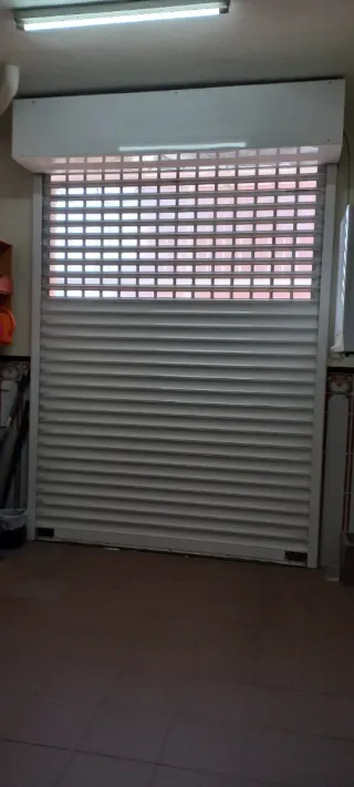 Cierre de persiana para puerta de garaje o local en aluminio blanco,con dos mandos.Mide 3 metros de alto x 2,24 de ancho.Se puede ver sin ningún problema. - Material:aluminio - Color: Blanco. - Diseño: Persiana