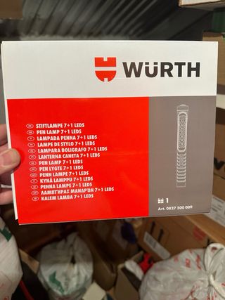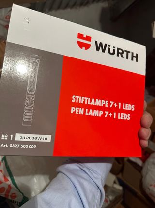 Linterna tipo bolígrafo de la marca Würth. - Modelo: Stiftlampe 7+1 LEDs / Pen Lamp 7+1 LEDs. - Artículo: 0827 500 009. - Número de referencia: 312038W18.