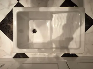 Lavadero de cerámica con un práctico escurridor integrado. Su diseño es funcional y estético. -60cm de largo 40cm d ancho y 27cm de profundidad - Material: Cerámica. - Color: Blanco. - Incluye escurridor.
