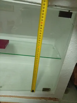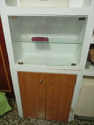 puertas de cristal y compartimento inferior con puertas de madera. El precio es de todo, y está en perfecto estado, las medidas en las fotos son...cuatro puertas de cristal, un estante de cristal, tres puertas de madera y sus estantes - Puertas de cristal - Estante interior de cristal. - Puertas inferiores de madera con tiradores.