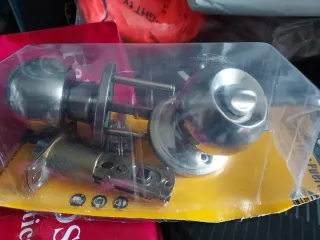 Cerradura de puerta nueva, lista para instalar. - Acabado metálico plateado. - Diseño redondo y moderno.