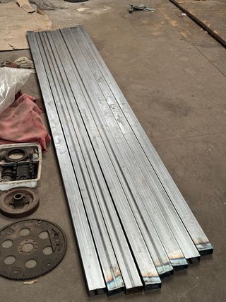 Lote de 8 perfiles de acero con medidas de 70x40mm y un grosor de 1.5mm. Cada perfil tiene una longitud de 3 metros. - Material: Acero. - Dimensiones: 70x40x1.5 mm. - Longitud: 3 metros cada uno. - Cantidad: 8 unidades. - 10€ cada perfil, se venden juntos o por separado