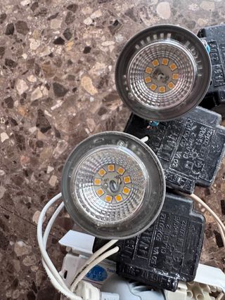 Se venden cuatro focos LED tipo ojo de buey, ideales para iluminación. - Cada foco incluye su transformador. - Voltaje: 115-230V. - Potencia: 50 VA 50/60 HZ. - Clase 2.