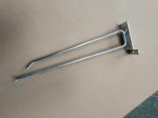 Se vende un lote de ganchos metálicos, ideales para colgar objetos. - Material: Metal cromado. - Diseño: Ganchos con base para colgar en panel. - Cantidad: Aproximadamente 60 unidades.