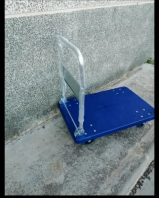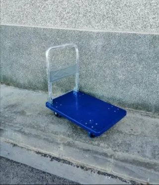 Plataforma de transporte resistente con gran capacidad. Pesa unos 12 kilos - Color azul. - Ruedas para facilitar el movimiento. - Asa plegable para un almacenamiento compacto.