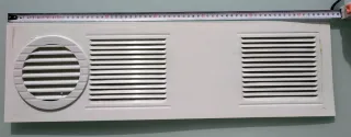 Tapa de aluminio blanco para panel fijo. Ideal para ventanales o paneles que sustituyas cristal o fijo por éste con ventilación. El redondo permite dos posiciones como se ven en las fotos: abierto o cerrado para permitir más o menos aireación del habitáculo y evitar moho, olores, etc. - Material: Aluminio. - Color: Blanco. - Medidas 66x20x2 cm - Diseño: Panel fijo con rejillas. Vendedora seria, ¡puedes comprobarlo en mi historial de ventas! ;-)
