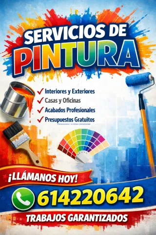 Servicio profesional de pintura para interiores y exteriores. - Pintura de casas y oficinas. - Acabados de alta calidad. - Presupuestos gratuitos. - Trabajos garantizados. - calidad rapidez y buen precio PREGUNTA SIN COMPROMISO!!