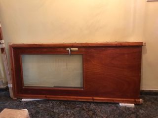 Puerta de madera con un panel de cristal. - Marco de madera oscura. - Panel de cristal translúcido. altura con marco 2.10 ancho94.5 con marco.puerta2.0por 80