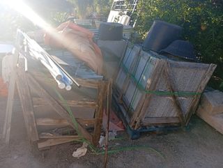 Tarimas de madera, ideales para proyectos de exterior como vallas o suelos. Su diseño permite una fácil instalación y un acabado natural. - Dimensiones aproximadas: 1x1 metro. - Material: Madera tratada. precio unidad me quedan 10
