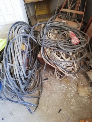 Se venden mangueras de luz y dos montacargas. Ideal para trabajos de construcción o eléctricos. - Mangueras de luz de alta resistencia. - Dos unidades de montacargas. Uno monofasico de 220A y otro trifásico de 380A