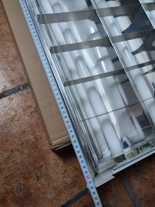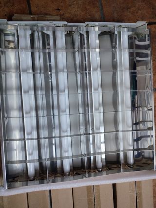 Se venden 12 placas de luz fluorescentes, ideales para iluminar espacios amplios. Medidas: 60 x 60 - Cada placa tiene capacidad para varias bombillas. - Estructura metálica. - Reflectores interiores. Cada placa la vendo por 10€. Si las coges todas te las dejo en 100€