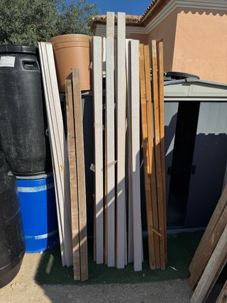 Láminas de madera, ideales para marcos de puertas o rodapiés. - Dos medidas disponibles: 2,30 metros y 2,50 metros. son las blancas de la foto precio unidad tendre unas 20