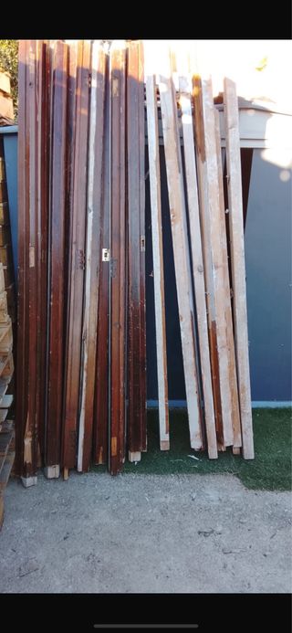 Lote de maderas de diferentes medidas, ideales para proyectos de construcción o bricolaje. - Postes y vigas de madera. - Medidas aproximadas: 2.20 metros y 2.30 metros de largo. - Secciones aproximadas: de ancho tienen 9x5 cm y 10x5 cm. habran 10 en total