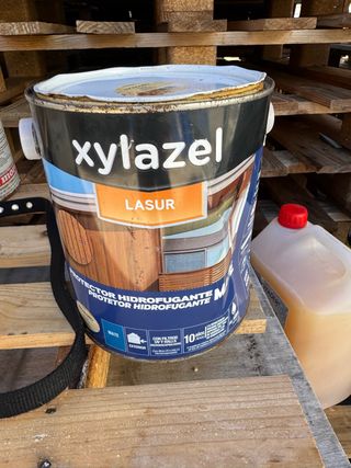 Protector hidrofugante Xylazel para madera, acabado mate. - Formato de 2,5 litros. - Protección para exterior. - Con filtros UV y HALS. - Duración de 10 años. en la tercera foto se ve el precio en tiendas