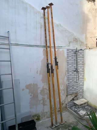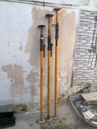 * OFERTA 45€ para todos juntos * 1 x 1,75 - 3,15m 15€ 1 x 1,95 - 3,20m 15€ 1 x 2,05 - 3,40m 20€ Accesorio para la construcción, destinado a soportar una carga mientras se realizan reparaciones o nuevas estructuras, con bases recortadas para facilitar su almacenamiento. Son oxidados, pero es superficial, están en buen estado. Buena calidad son más fuertes que lo que venden Leroy Merlín Nota - La foto última es solo para un ejemplo!