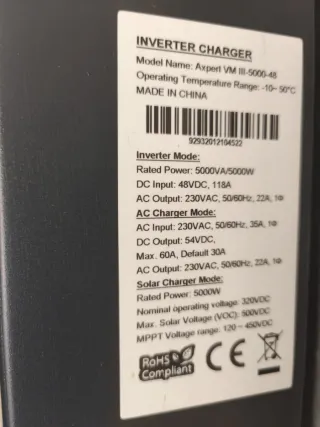 Se vende inversor Voltronic Axpert junto con baterías. - Modelo de inversor: Axpert. - Marca del inversor: Voltronic. - Incluye baterías. 🇪🇸 Español En venta: Inversor Voltronic Axpert 5 kW 48 V con 2 baterías Pylontech de litio (total 5 kW de reserva). Funciona perfectamente. Precio: 1.600 € — Para recoger. 🇫🇷 Français À vendre : Onduleur Voltronic Axpert 5 kW 48 V avec 2 batteries Pylontech lithium (soit 5 kW de réserve). Fonctionne très bien ! Prix : 1 600 € — À venir chercher