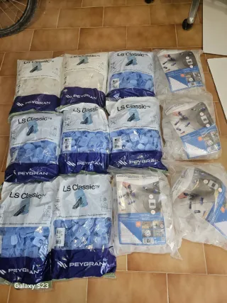 Lote de niveladores para baldosas de la marca PEYGRAN, modelo LS Classic. - Incluye cuñas y pinzas. - Color azul y blanco.