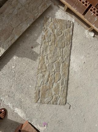 Losa porcelánica a estrenar con acabado que imita la piedra natural. Ideal para revestimientos exteriores o interiores. - Diseño rústico y texturizado. - Tonos tierra y beige. - Acabado mate. - Modelo: Aitana Sand - Formato: 32x89 cm - Acabado: Efecto piedra 33 metros en total en sus cajas. 1 CAJA contiene 1,139 m2 20e metro cuadrado.