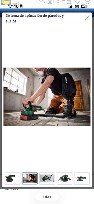 Para el tratamiento de revestimientos de paredes y suelos, paredes de yeso o superficies de madera Potente motor de 1050 vatios con velocidad regulable Trabajo cercano al borde gracias a la parte delantera desmontable de la protección 2 accesorios intercambiables fácilmente (bloqueo del husillo) Disco de copa de metal duro para el desbaste grueso Plato de lijado de velcro para el tratamiento con papel de lija (juego de 6 papeles de lija incluidos) Función de aspiración integrada con bolsa de recogida de polvo de 25 litros y manguera de aspiración extensible Conexión para aspiración de polvo externa (incluido adaptador)
