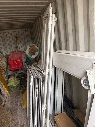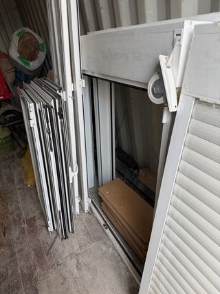 Conjunto de ventanas de aluminio. - Marcos de aluminio blanco. - Cristales incluidos. 1 de 118 alto X 70 ancho +persiana 1 de 118 de alto x 115 ancho + persiana 1 de 118 de alto x 171 ancho+ persiana 1 de 207 de alto x58 ancho, sin persiana medidas en cm