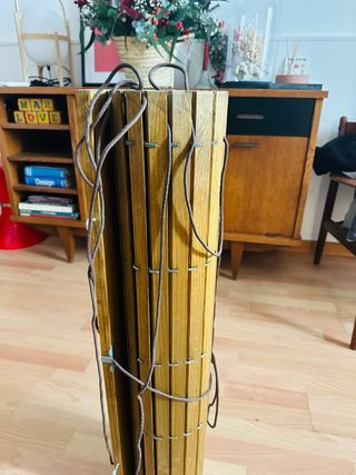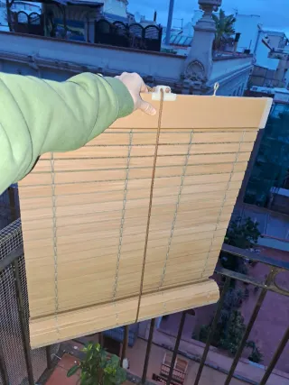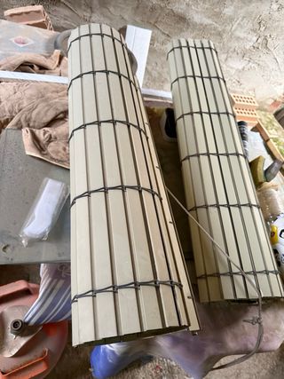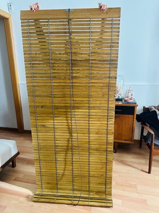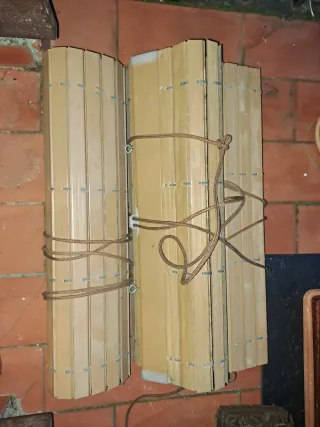 Vendo DOS persianas enrollables de madera natural (estilo alicantina), ideales para proteger del sol y dar un toque rústico a terrazas, balcones o ventanas. 📏 Medidas: Ancho: 98 cm Alto (Largo): 1,49 m ✅ Estado: Están en muy buen estado de conservación, como se ve en las fotos - Material: Madera. - Color: Natural. EL PRECIO ES POR LAS DOS (el precio de la unidad es negociable)