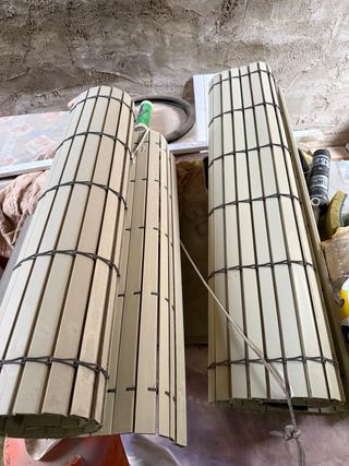 Persianas alicantinas de color beige en buen estado. Ideales para ventanas o puertas , medidas largo 2'55cm y ancho 90 cm y 92. (40€ unidad) - Son de plástico resistente. - Fáciles de instalar.